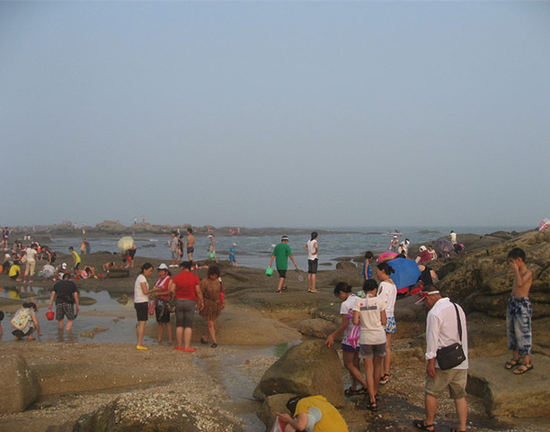 落潮的时候可以赶海拾贝,捉小螃蟹,湿湿的沙滩变得硬硬的,踩上去又会是另外一种感觉。