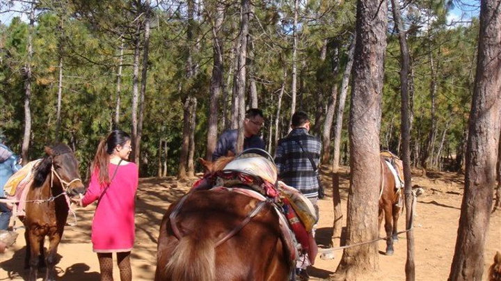 在昨晚回酒店之前,“前男友”就告诉我们,明天带我们去玩,一早来接我们。第二天,果然,他还叫上了一辆越野车载我们去拉市海。