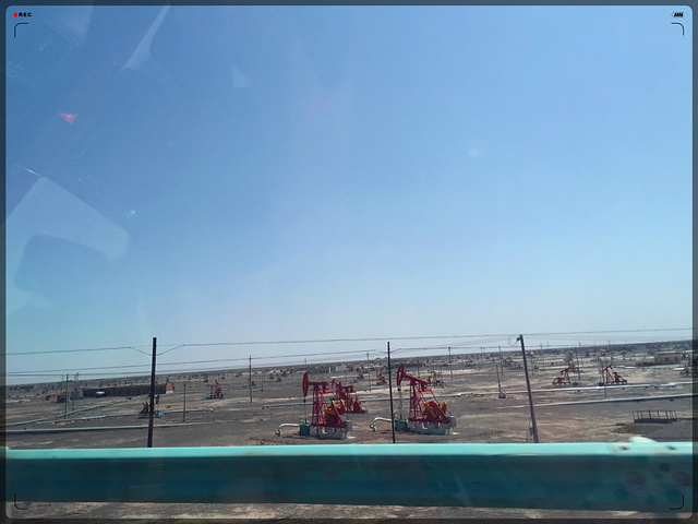 克拉玛依的大型油田,机械手臂比比皆是。