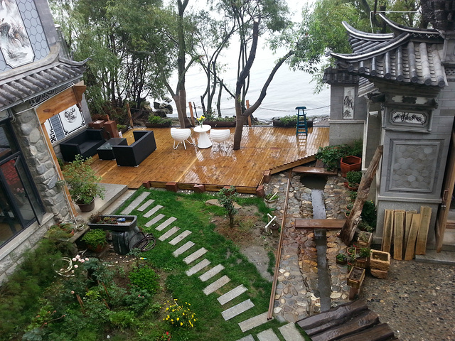 取了行李至花木深,洗过热水澡,在阳台上就着花生,喝着小酒,看看洱海,爽!