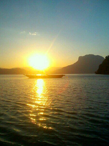 落日余晖,水波潋滟。