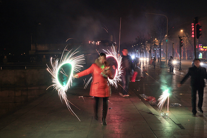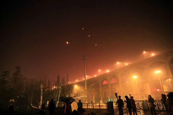 穿过户部巷,来到长江边,很多人放孔明灯