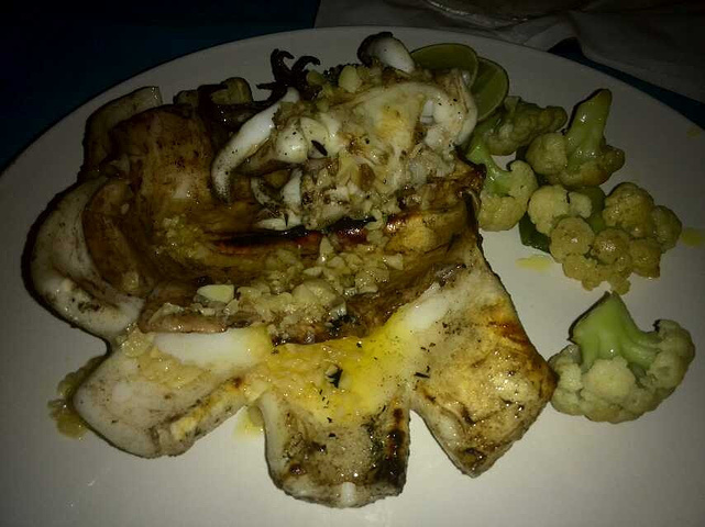 逛累了在街上选了一家大排档式的海鲜餐厅, 点了印尼炒饭和烧烤鱿鱼.重点就是这个鱿鱼了.烤好后脆脆有咬劲,新鲜美味.挤上酸酸的甘桔.好吃到无法用言语来形容,还想吃……还想要再去吃一次……,推荐大家一定要去试一下喔。