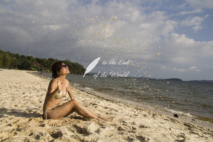 岛上的小孩光着脚丫瞎晃悠,狗狗也跟在她的背后觅食。