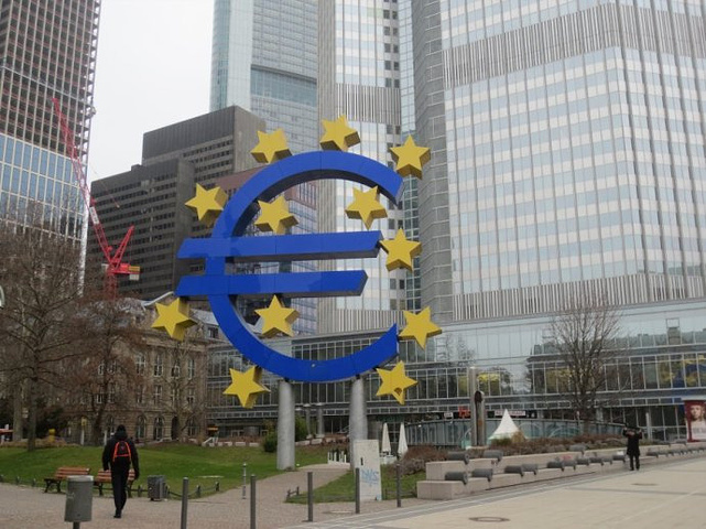不知不觉走到了欧元广场,巨大的欧元标志依旧醒目地矗立在广场大楼前,只是欧元区的经济就像德国的天气一样令人沮丧,让人看不到提振的希望,对经济好转的希望就如同渴求德国阳光明媚的晴天一般。