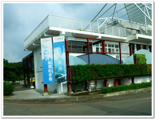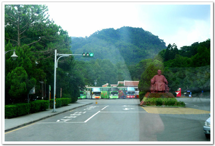 车行至入口处,正面塑有蒋公的坐姿雕像。