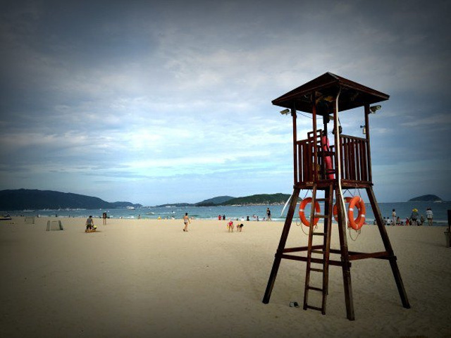 这几天风很大浪很高,海边都是挂红旗,不让下海游泳。