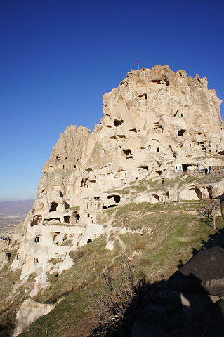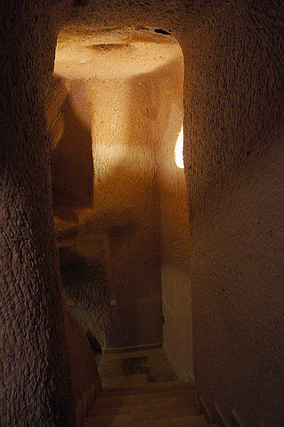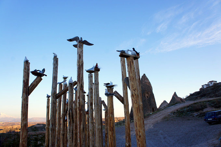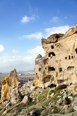 where you have a nice view of the castle and the fantastic cone-shaped rock formations surrounding it. The magnificent landscape of Cappadocia has been formed from solidified lava streams, ash and tuff stone from volcanic eruptions millions of years ago. The landscape you can see now is the result of thousands of years of continual erosion, which has shaped the tuff deposits into the strangest pyramids and cones.