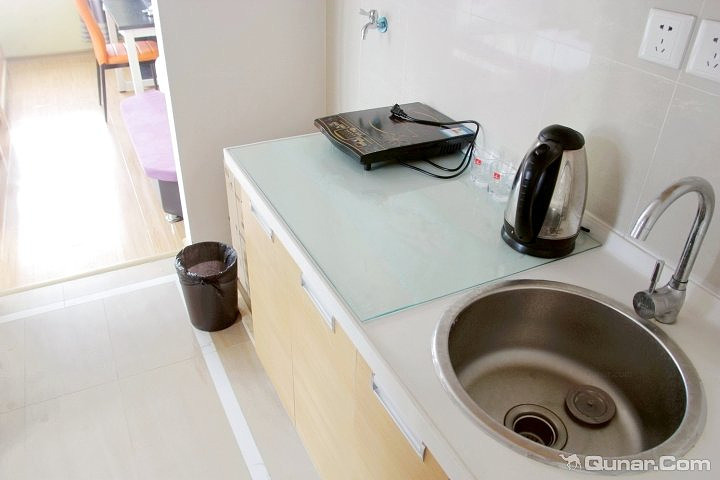 SEE?门廊这里有水台和电磁炉,这就是家庭式公寓的好处,俩人如果兴致来了,想露一手那是相当好解决的。向热心的老板借些工具,去抚顺路海鲜市场(本地人才去的大型海鲜市场,物美价廉,良心推荐)买些食材,回来慢慢倒腾,真是美滋滋的居家小日子。只可惜我俩都是懒人,电磁炉和抽油烟机对我们来说只是摆设。囧。