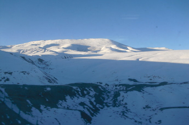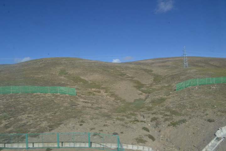 由于隔着火车车窗玻璃,拍出来的效果比较差。这里是大名鼎鼎的昆仑山口。大约海拔5000米。你看白雪皑皑,终年不化。