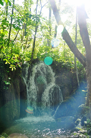 我们沿着木栈道从上湖往下湖的方向走,湖泊之间的落差还是蛮大的,据我的目测至少有几百米,后来看了介绍说是最大的落差有一千米,由于有落差就形成了大大小小的瀑布。从上往下看,走在底下木栈道的人还是渺小呢!