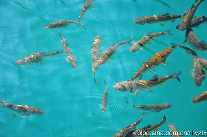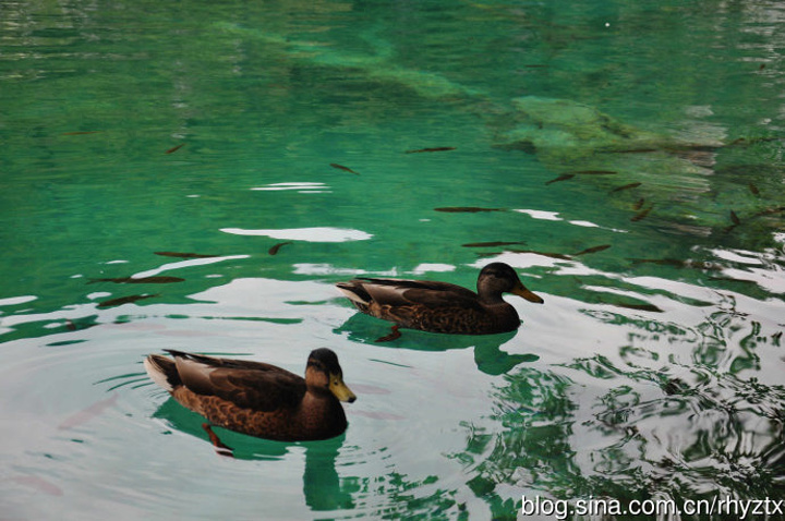 水色呈碧色或蓝色,清澈见底,偶尔见鸭子戏水,鱼儿在水草中穿梭。到底是广州人,讨论着湖里的鱼是什么鱼,眼馋得很。
