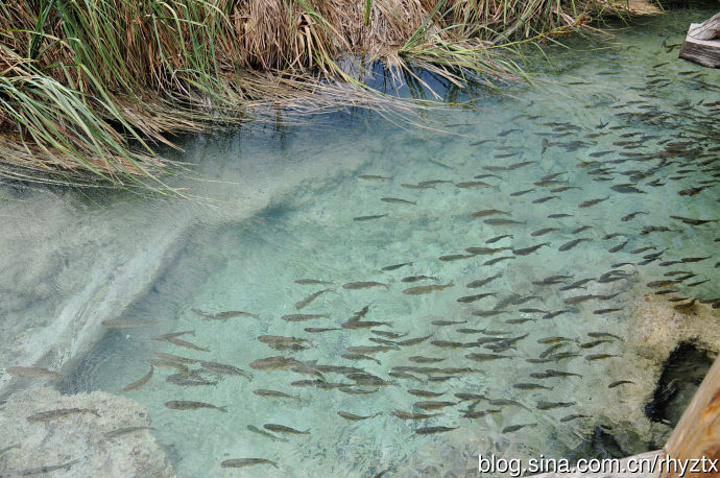 沿着山林穿行大概一个小时候,忽见一宽阔的湖面,豁然开朗。原来可从此处乘船至下湖区。浅滩处仍可见鱼儿嬉戏。