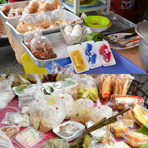 在路边遇到卖东西的小摊,是不是看着就没食欲了。在夜市如果要吃盒饭的话,也是用这种袋子装的,而且这样装一袋米饭就2块人民币,还很难吃。