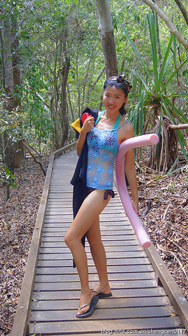 要想抵达白色天堂海滩,我们需要进入国家公园森林,翻过一座小山丘。大家都各自拿着潜水服、浮力棒,满心欢喜地朝白天堂靠近~~~