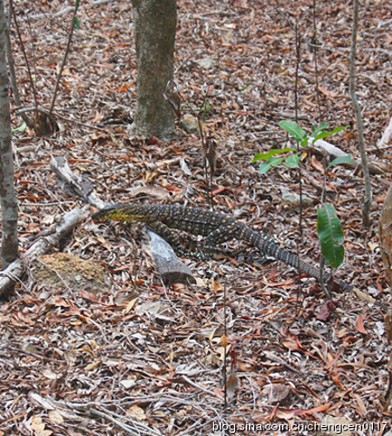 这个国家公园的森林里有着千奇百怪的热带植物,还能不经意间邂逅如此巨大的蜥蜴。我们在澳洲,竟然看到各种巨蜥。动物的隐蔽色在这里算是展现得淋漓尽致了。几乎都是和周围的环境一个颜色,若不是妈咪眼尖,我这种近视眼是断然无法发现的。