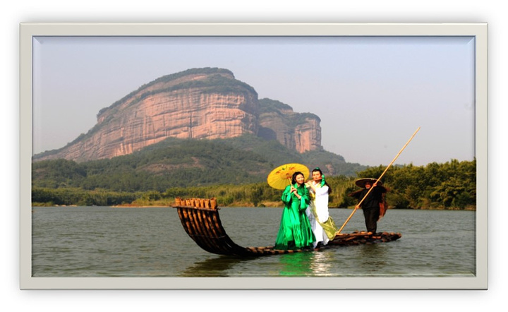 丹霞锦水秀,竹筏悠然游。丹霞山竹筏漂流位于锦江石下村头至牛鼻桥头河段,游程约8公里,是丹山锦水与田园村落组合最完美的河段。古老的夏富古村将竹筏游分为半程和全程两种,全程需2小时。乘筏漫游可欣赏到丹霞山腹地美丽的田园风光、古色古香的古村寨、惟妙惟肖的姐妹峰、拇指峰、上天龙、观音山、田螺山以及长沙背、牛鼻深切曲流等奇景。