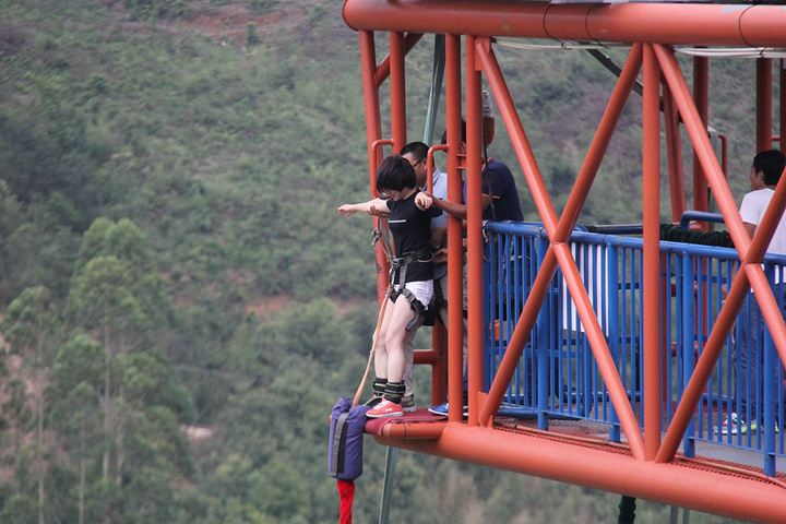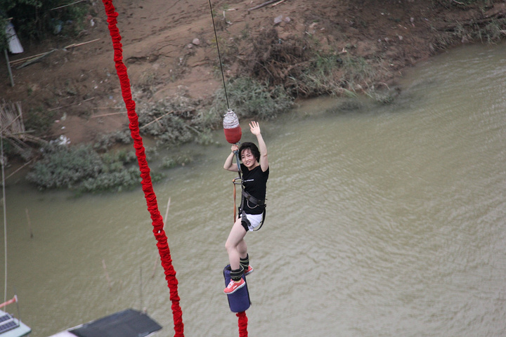 下面说蹦极啦,啊哈哈哈哈,坐了一整天就为了这么个啊