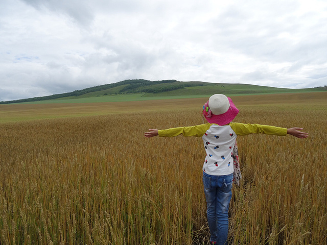 从临江到老鹰嘴的路上,两边都是野花。还有整片整片的麦田,居说范冰冰在这里拍过电影。