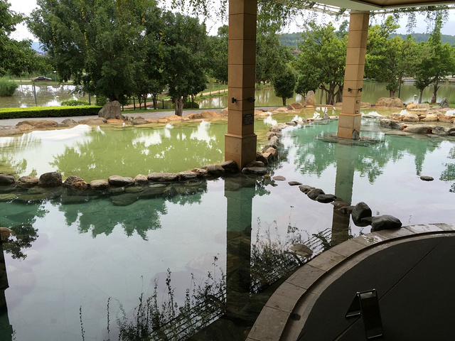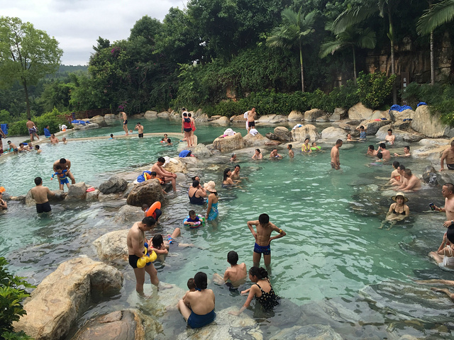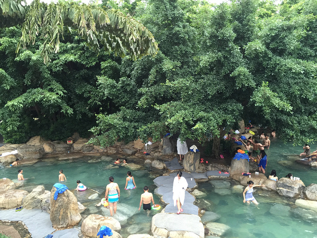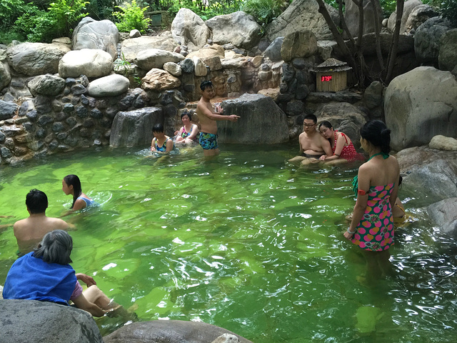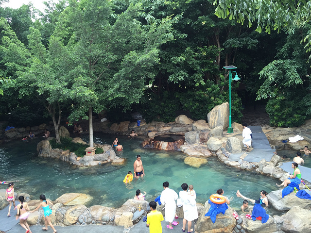 弥勒湖泉温泉是泡温泉的首选,因为温泉独有露天温泉最好,而湖泉温泉就是在半山上的露天温泉。湖泉温泉有7个特色的小泡池,2个大的泡池,在山顶还有一个大的游泳池。早上起来,吃过早点,逛了一圈生态园,我们便一起来泡温泉。