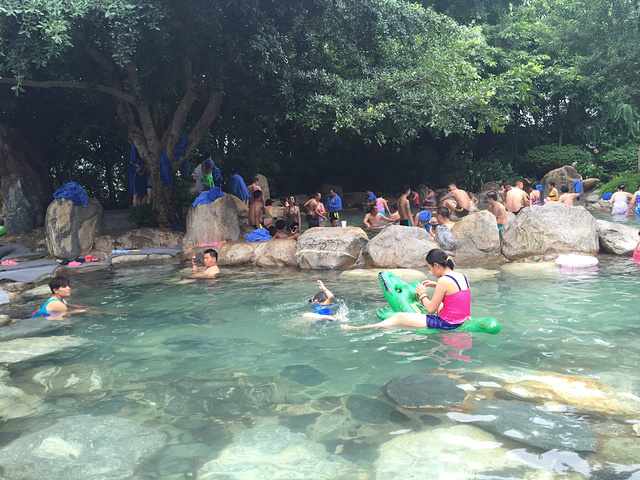 湖泉温泉的票价80元/人、大假日128元/人、儿童票28元/人。我们因为入住花园宾馆,有6折优惠,每人48元。
