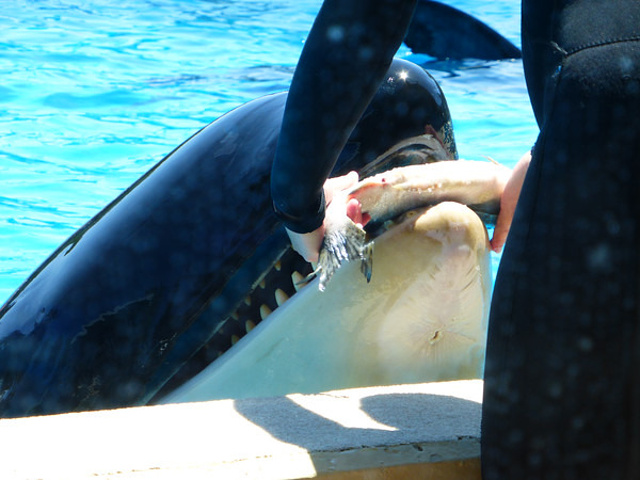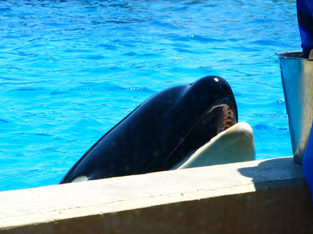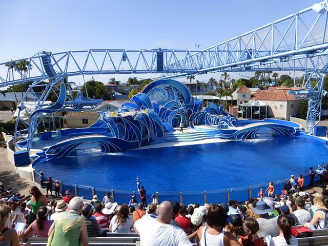 SeaWorld不能带食物入园,水可以带。强烈推荐 Dine withShamu,我订的是午饭,buffet品种不多,味道也一般,但是最值得的就是能够坐在室内(天气太热了)边吃饭边看杀人鲸表演。进餐厅之前,工作人员会给每个家庭拍张合影,觉得好就付钱拿照片。