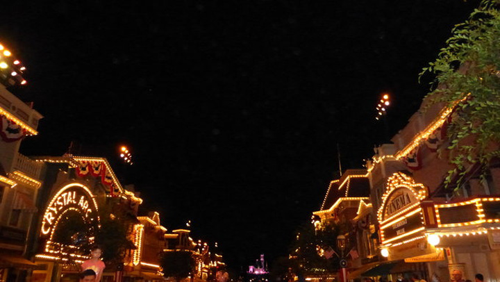 晚上8点再进园子,小的还要坐敞篷火车。华灯初上,五颜六色的彩灯和带着发光头饰的游客们把迪斯尼点缀得分外夺目。
