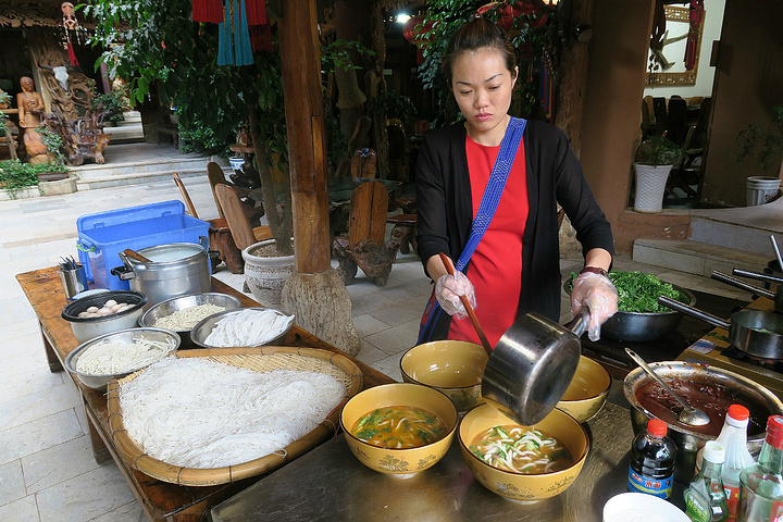 店家不只会赠送一小碟自家腐乳, 米缽旁还体贴的放着一大盆稠稠的,香香的米汤。最得意的是米饭竟有三种,白米,糙早米和小米,每样添一点点肚皮便已滚圆,只能看着任吃红薯玉米任发愁。