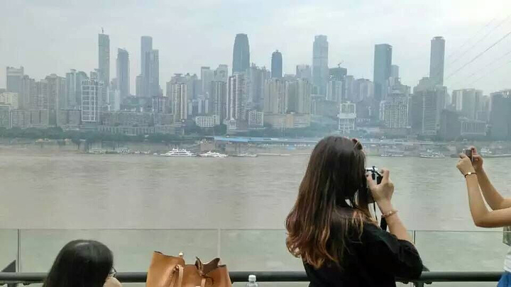 晚上在南滨路的餐厅吃饭。是一家酒店里的餐厅,我们在室外吃饭目的是为了看风景。对面是解放碑,有小香港的感觉。这是重庆的土豪街,重庆最贵的酒店喜来登也在这条街上。吃饱饭在江边散步很棒。