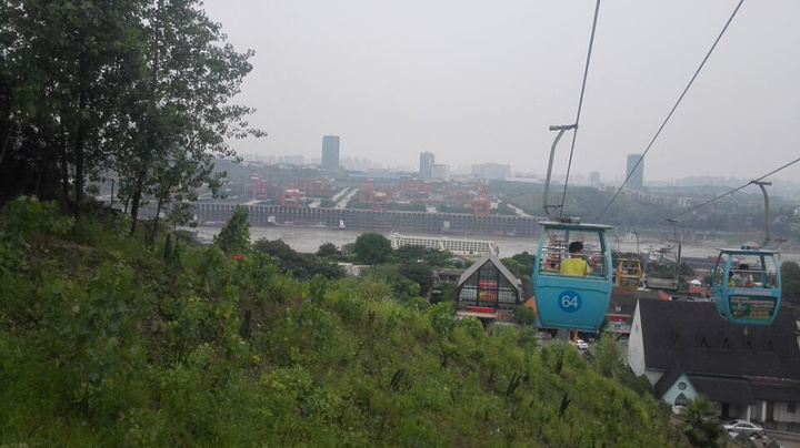 洋人街的缆车,5元一人,可以从入口坐到出口。中间有一个站中站,可以在洋人街的中心下车。缆车有点晃,刚开始不敢乱动,坐一会之后就适应了。性价比很高。对面是一个大码头,对于学港口专业的我看到这么大的码头很激动。