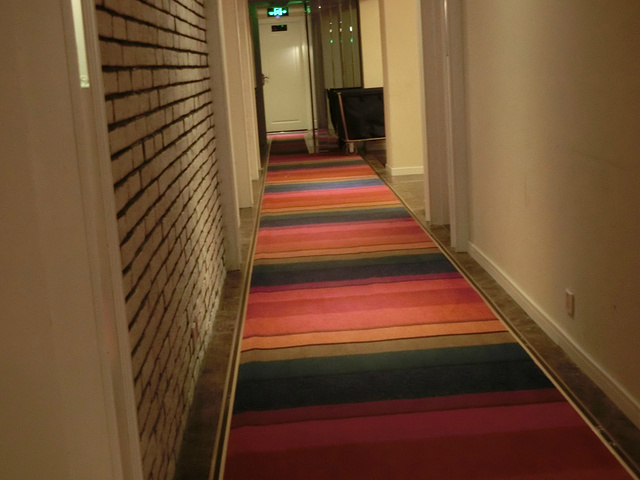 酒店走廊,装修很精致的酒店,刚开张设施都是新的。看得出老板花了很多心思,房间的香皂是心形的,很多细节方面做得很好。服务态度也好。下次来重庆还住这家