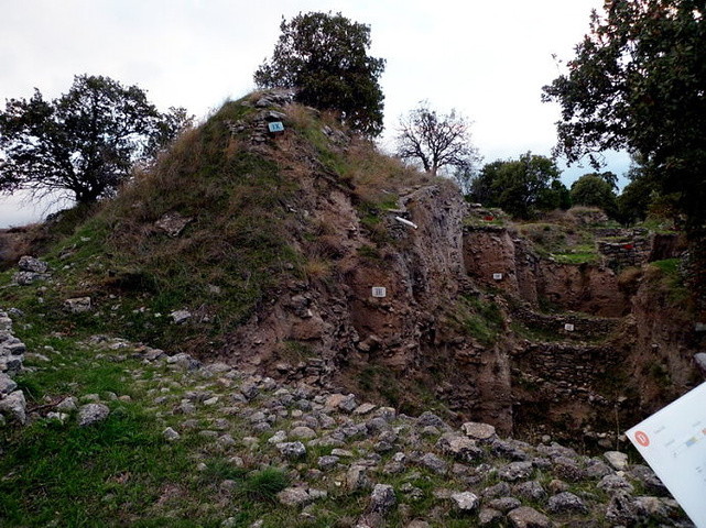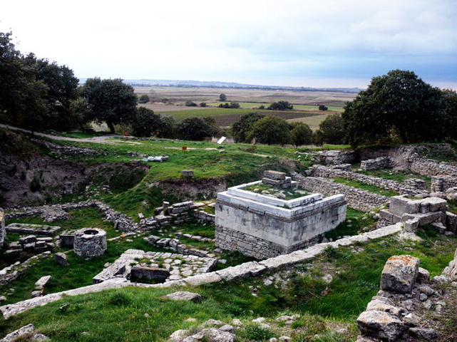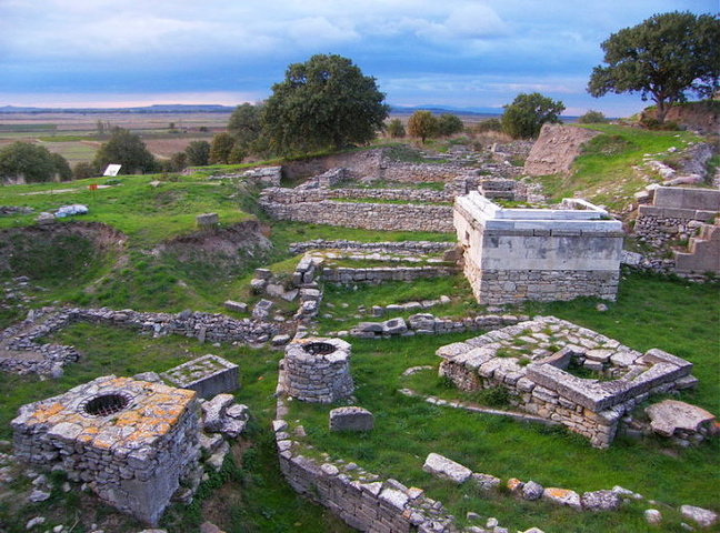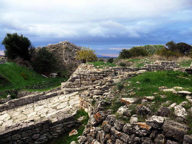 可以看到公元前2600~公元前2300年的城堡遗址,直径达120多米,城中有王宫及其他建筑。据说在一座王家宝库中,发现了许多金银珠宝及青铜器,还有陶器,多为红色和棕色的。此外还出土有石器、骨器、陶纺轮等。内有大量造型朴素,绘有几何图形的彩陶和其他生活用具。在这里还看到公元400年罗马帝国时期的雅典娜神庙以及议事厅,市场和剧场的废墟等等。这些建筑虽已倒塌败落,但从残存的墙垣、石柱来看,当年气势相当宏大。