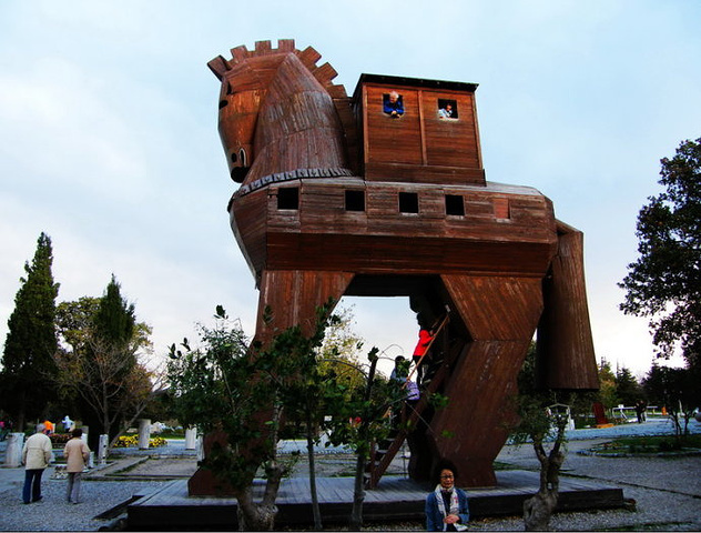 进入景区的时候,天色已经变暗了,那个仿制的巨大的木马伫立在空地上,爬进木马的肚子,想象着当年希腊士兵攻占特洛伊的场景。仿佛听到旷野上杀声震天,看到双方兵刃相见,刀光剑影。