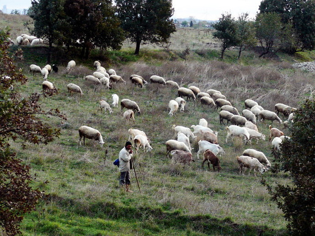 阴沉的天空,浓浓的乌云时而出现光亮。让这片遗址更显神韵。牧羊老人更让你有一种穿越时光隧道的感觉。