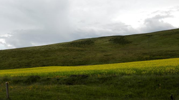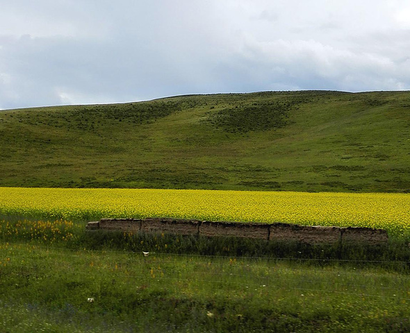 这一路,真的要醉了你的双眼,翻越祁连山脉途中,沿路是成片成片的油菜花,路边都是行人停车拍照,或者是新人们拍婚纱照,大片油菜花与大片野花穿插,山间云雾迷漫,层峦叠嶂,远远看见一个个白色的小点在高山草甸中游荡,走近一看,是羊群在山坡上吃草,还有三三两两的耗牛,看此情景,忍不住哼哼:牛儿在山坡上面吃草……看到有好多人家在路边扎营,烧烤,真想下去玩玩,不过想想,还有很长的路要走,而且开始下雨了,就稍事休息后继续出发。看到路边有辆大巴侧翻在路边,也不太严重的样子,没当回事,第二天一看新闻,一死十五伤,安全带一定要系好哦!出门在外,安全最重要。