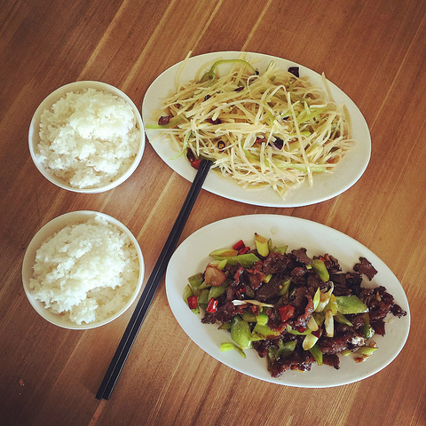 营地会有阿姨做饭,你也可以选择吃自己的干粮,在沙漠里价钱也比较贵,这个是可以理解的。