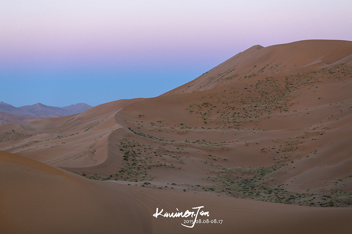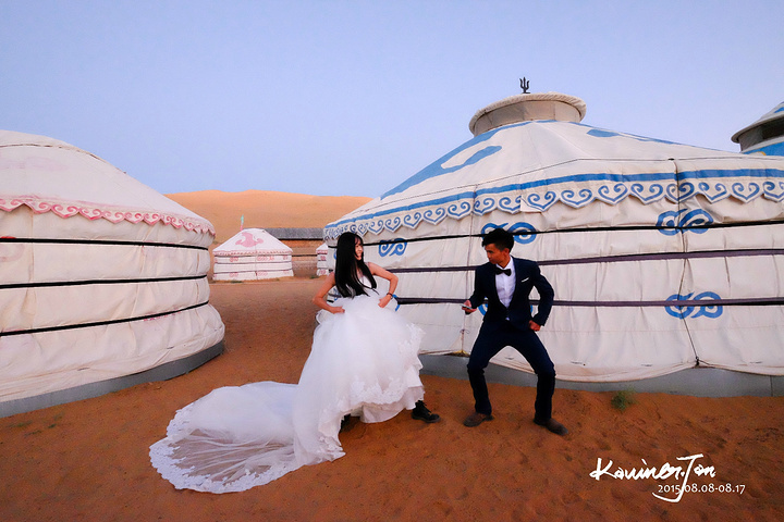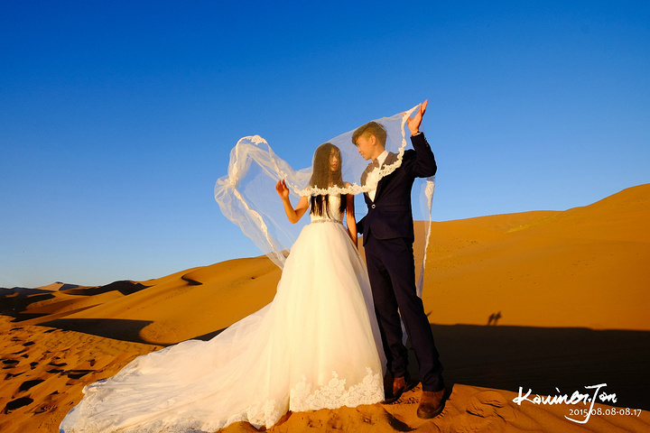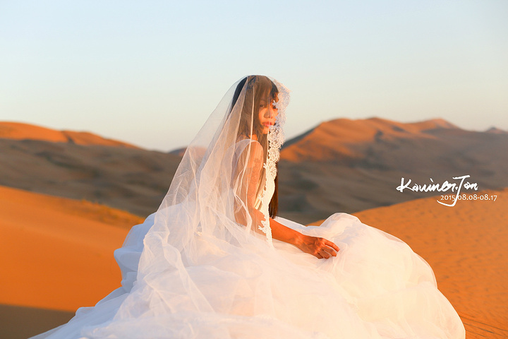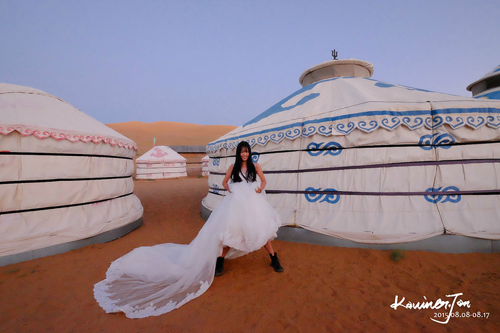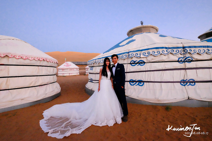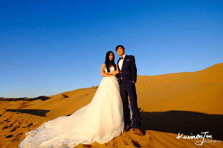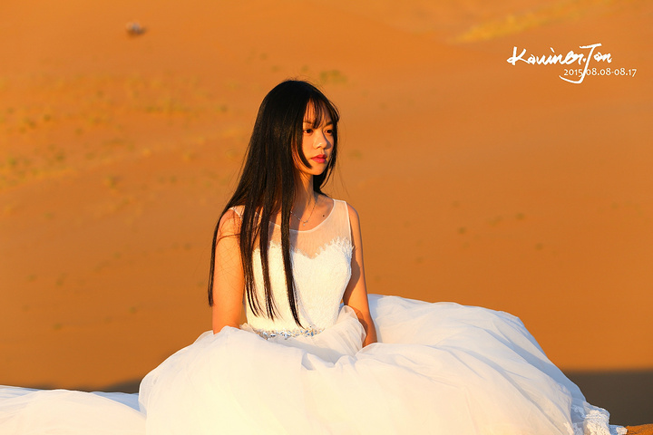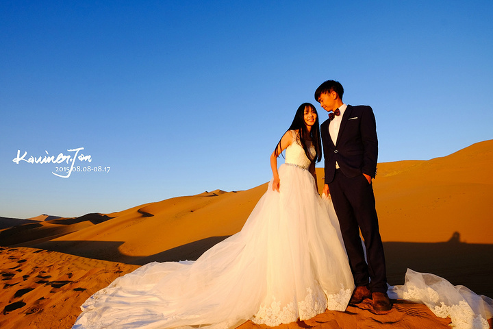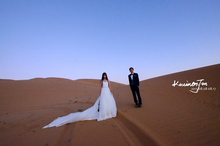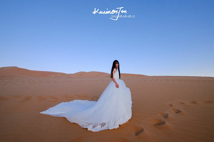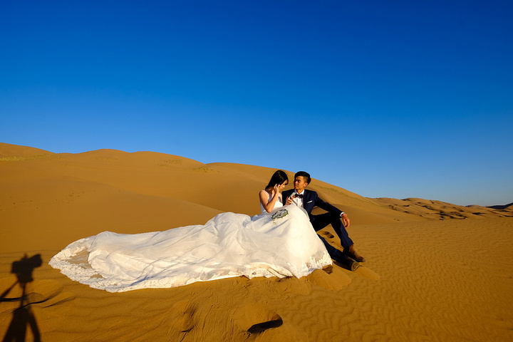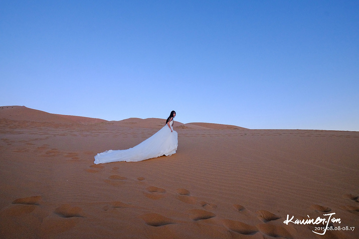 我不认为我们是为了拍婚纱而来的,所以,拍婚纱之余,必须好好地享受风景。差不多日落了。我们又回营地换婚纱。拍了几张。在沙漠上放三脚架真不是一件容易的事情,也怕一阵风就把相机吹倒