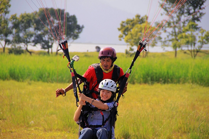 说到玩滑翔伞的时候会吐,纯属胡说八道,害我白白从吃完饭到飞上蓝天的间空紧张了好几小时,当然我想这也可能跟个人体质什么的有关,毕竟之前听很多人绘声绘色的讲述他们玩滑翔伞时狂吐不止的经历绝对不像有假,也因此,乘坐前也应做好相应的心里准备。