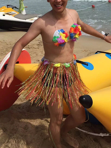 离海滩很近,住的别墅海景房和普通海景房。别墅是正海景,主楼的是侧海景。酒店有点老了,但也不失豪华,有自己的游泳池,还有一个湖,泳池BBQ也是非常出名的。而且紧邻海底世界,要想冲浪,潜水,香蕉船,出门就是。我们在淘宝买了海底世界一价全含,包括潜水、冲浪、香蕉船、快艇、午餐、草裙舞、沙雕、竹竿舞等是275元。就是问要面镜潜水还是一次性咬嘴,面镜100元,咬嘴40,死活推荐面镜其实咬嘴就够了。就是潜水服都破了,教练也就让你潜五分钟就出来了。我下到两三米吧,海底还是很漂亮。亚龙湾潜水也就这水准了,多花钱也一样,就意思一下。由于耳朵反应比较大,也倒无所谓了。因为如果不顾耳朵疼硬潜的话,会耳膜穿孔的。在这里意外学会了冲浪,我们也是着急没擦防晒就去了,冲了一下午就晒伤了。同事说擦防晒在三亚不是美容手段,绝对是防护手段。黑不说,疼,痒,爆皮,惨不忍睹。我们的冲浪只是趴在板上,不是跪着和站着,这点也被同事鄙视。但也很好玩了,踩对一个浪,可以一直冲到岸边哒。也感觉自己酷酷哒