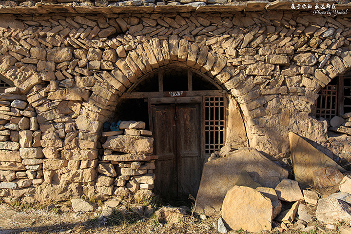 老牛湾古村落建筑依山就势,错落有致,所有建筑就地取材,全部用当地的石头、石片堆砌而成。造型各异的民居古院因势向形,石墙、石院随形而就,石碾石磨石仓石柜随处可见,整个村庄可算是一个经典的石头建筑博物馆。
