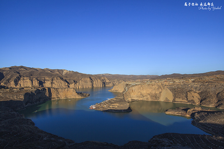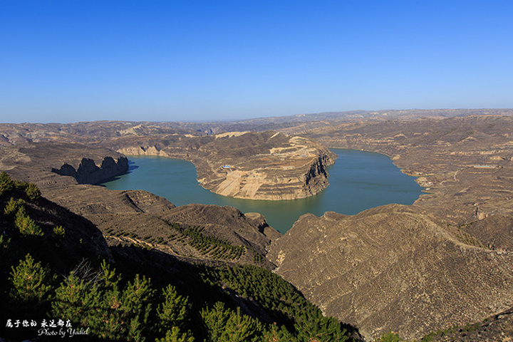 乾坤湾是一幅天然太极图,是黄河古道秦晋峡谷上一大天然景观,也是山西永和最亮丽最壮观的一个风景点。它形如太极阴阳鱼 ,环抱郁郁葱葱的青山。山上住着人家 ,炊烟袅袅。岸边的草滩上, 一 群黄牛正在河边饮水。乾坤湾不仅壮美 ,还是一幅黄土高原的生活图画 。