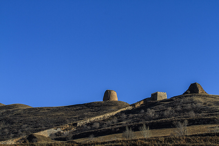 这里的长城与众不同,大同境内的堡子多以方形土堆为主,老牛湾附近的堡子多以梯形土堆为主,而北堡的长城多以圆珠形土堆为主,而这三种土堆在这里都能看到。