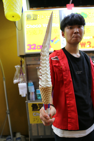 韩国这儿也是超级热啊……真的是热热热!正想着吃点什么解暑,就看到这个长长的冰淇淋!哇上面写着有32厘米!价格也才2000韩元,我拿在手里颤颤巍巍的,不过超级甜啊~冰淇淋巧克力什么的,都是带来慢慢幸福感的东西啊!