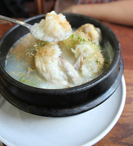 吃的这个百济参鸡汤,这是店外面的图,因为吃完觉得很好吃,所以才留图下次还来啊•~!