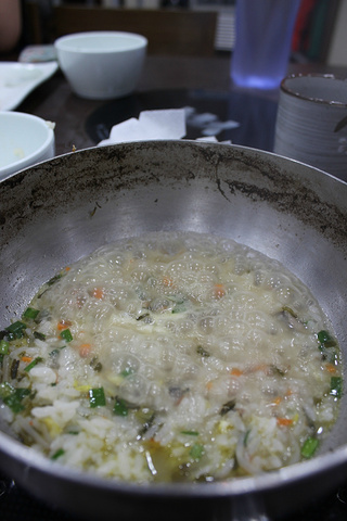 吃到最后,服务员小哥把大米倒进火锅,就变成了味道鲜美的一锅粥!真没想到竟然是这么吃的~我说怎么我之前挖着大米吃的时候,韩方偶吧那个欲言又止的表情……