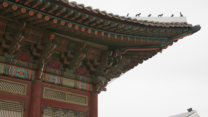 斗形屋檐,加上避雷小神兽,都是传统的沿袭。中韩同根同源,建筑风格也是如出一辙呢~
