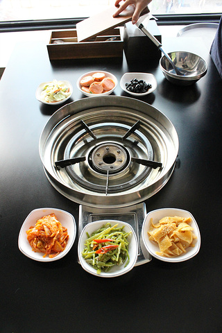 上午去过景福宫,简单去旅馆休息了下,就和接待方见了面。一个韩国小伙子,和一个中国年轻妹子作为翻译。中午,他俩带我们吃的这个!韩式小火锅哦~这是餐馆外面的样子,看上去还不错吧~韩语什么的我也看不懂嘛,就是挺有美感的。