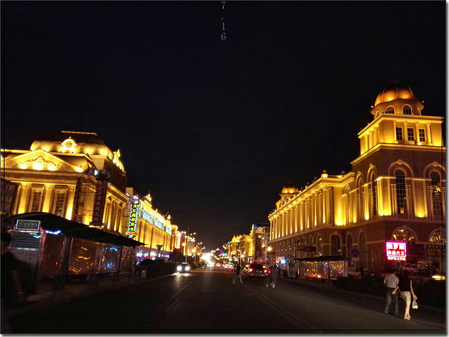 晚上去逛了逛满洲里的夜市。满洲里这的很小,据说只有六道街,不过夜景真的漂亮,和其他城市的夜景不一样,满洲里的夜景虽然也是灯,但都是房子上的灯,暖黄的灯光,镶嵌在整个房子上,西式的建筑,路灯不多,看上去很漂亮。