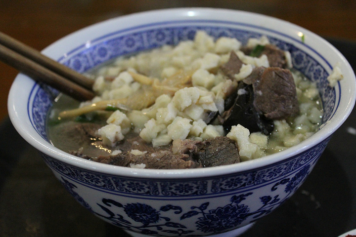 妈妈告诉我,玩累了,要吃饭,这个叫羊肉泡馍