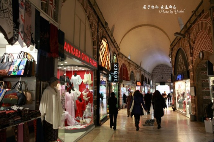 来这里逛街的主要以当地女性为主,她们当中很多人都保持着伊斯兰国家的习俗,女性依旧裹着头巾,逛街也是如此。沿着整个大巴扎逛上一圈,你会发现,这里的店主也基本上都是女性,而且是比较漂亮的土耳其女人。她们时常三五成群,坐在店门前的走廊上,喝着红茶聊着天,看着来来往往的人群。或者是一个人独自欣赏着风景。